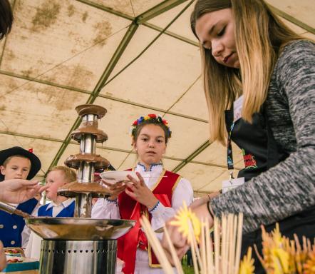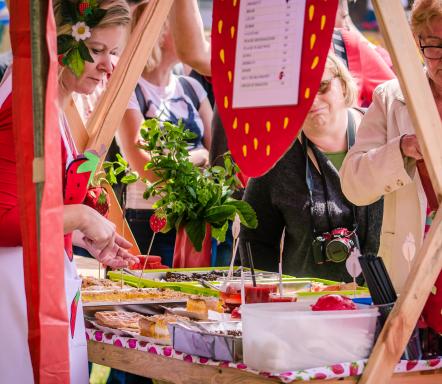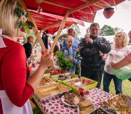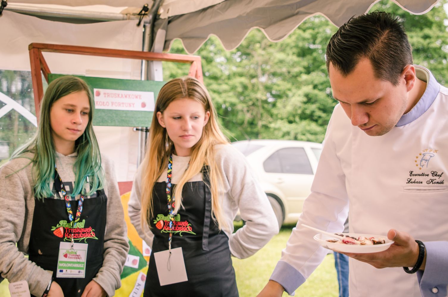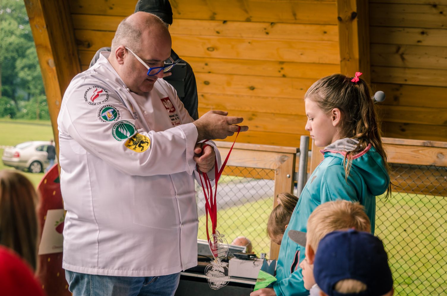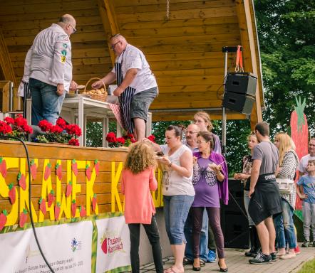 13.00 - Edukacyjne warsztaty kulinarne dla dzieci: „Truskawkowe pole - poznaj tajemnice kaszubskich truskawek”. Rozdanie nagród dla dzieci i pasowanie na „Truskawkowego Eksperta”