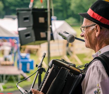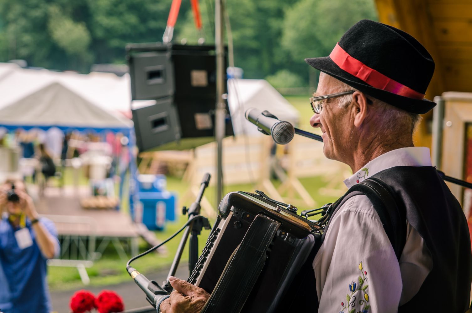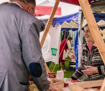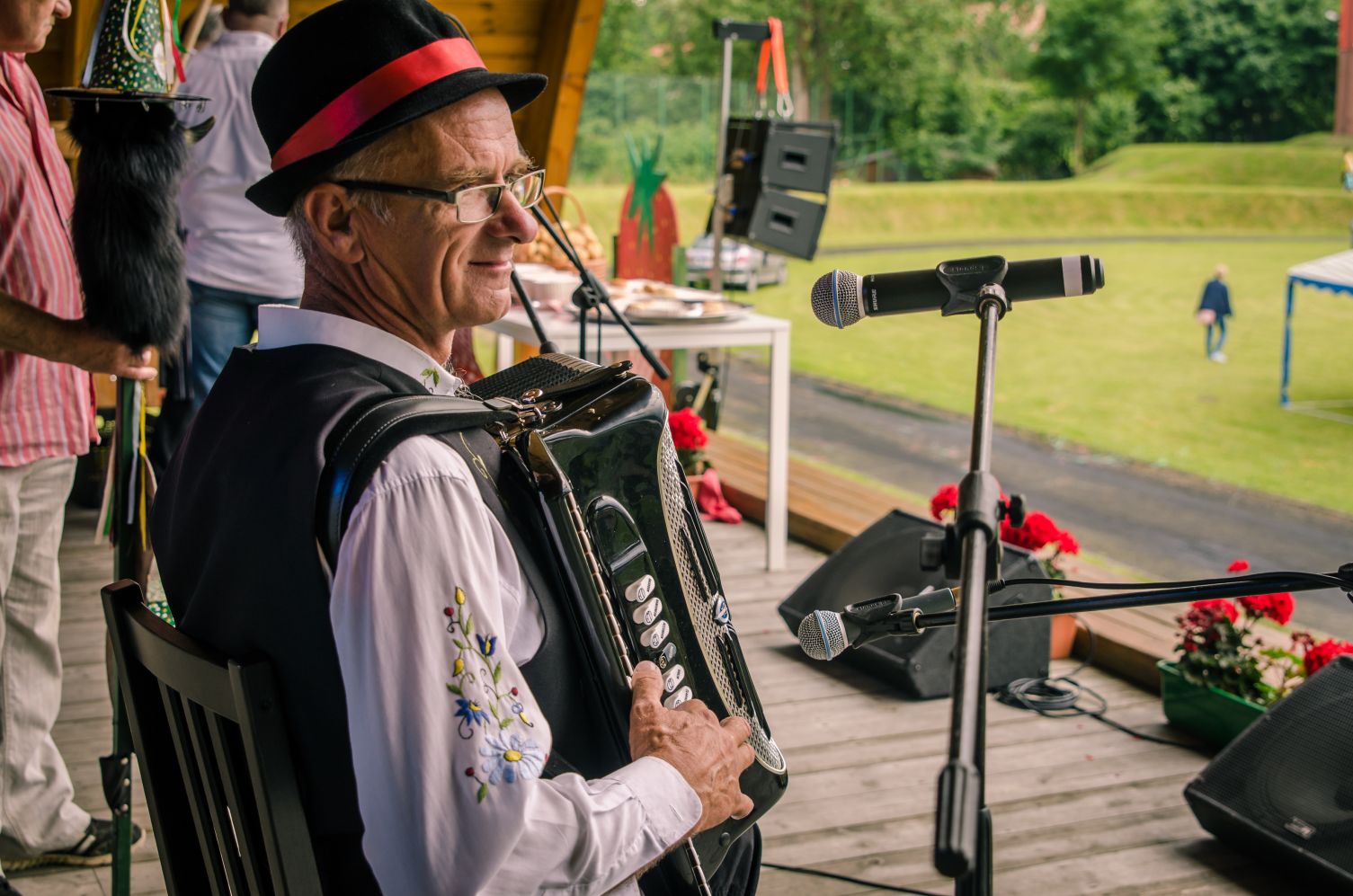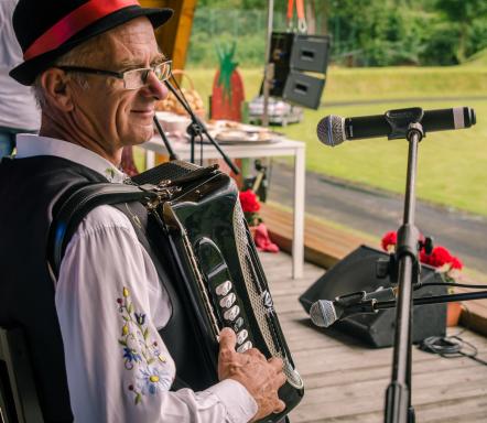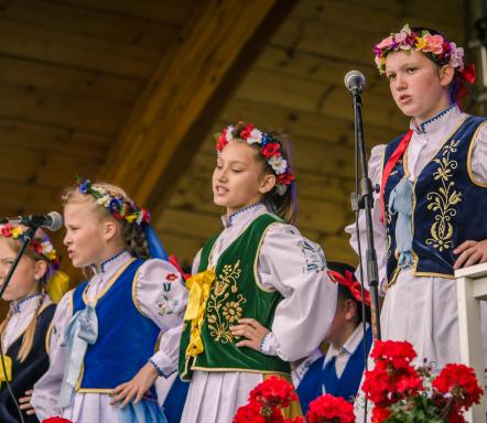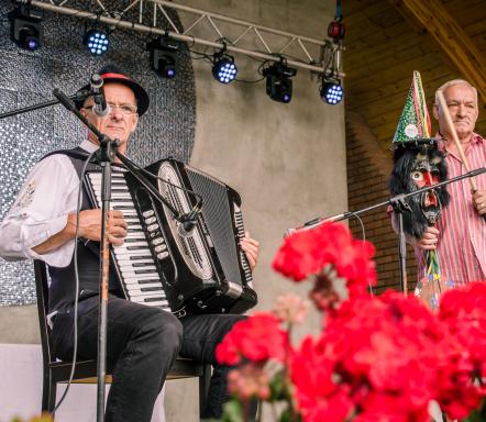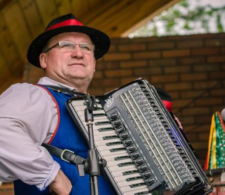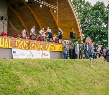 16.00 - Koncert chmieleńskich bazunistów pod przewodnictwem Tadeusza Makowskiego ocena produktów w konkursie im. H. Gruchałowej o Puchar Ministra Rolnictwa za najlepsze przetwory i desery z truskawek kaszubskich