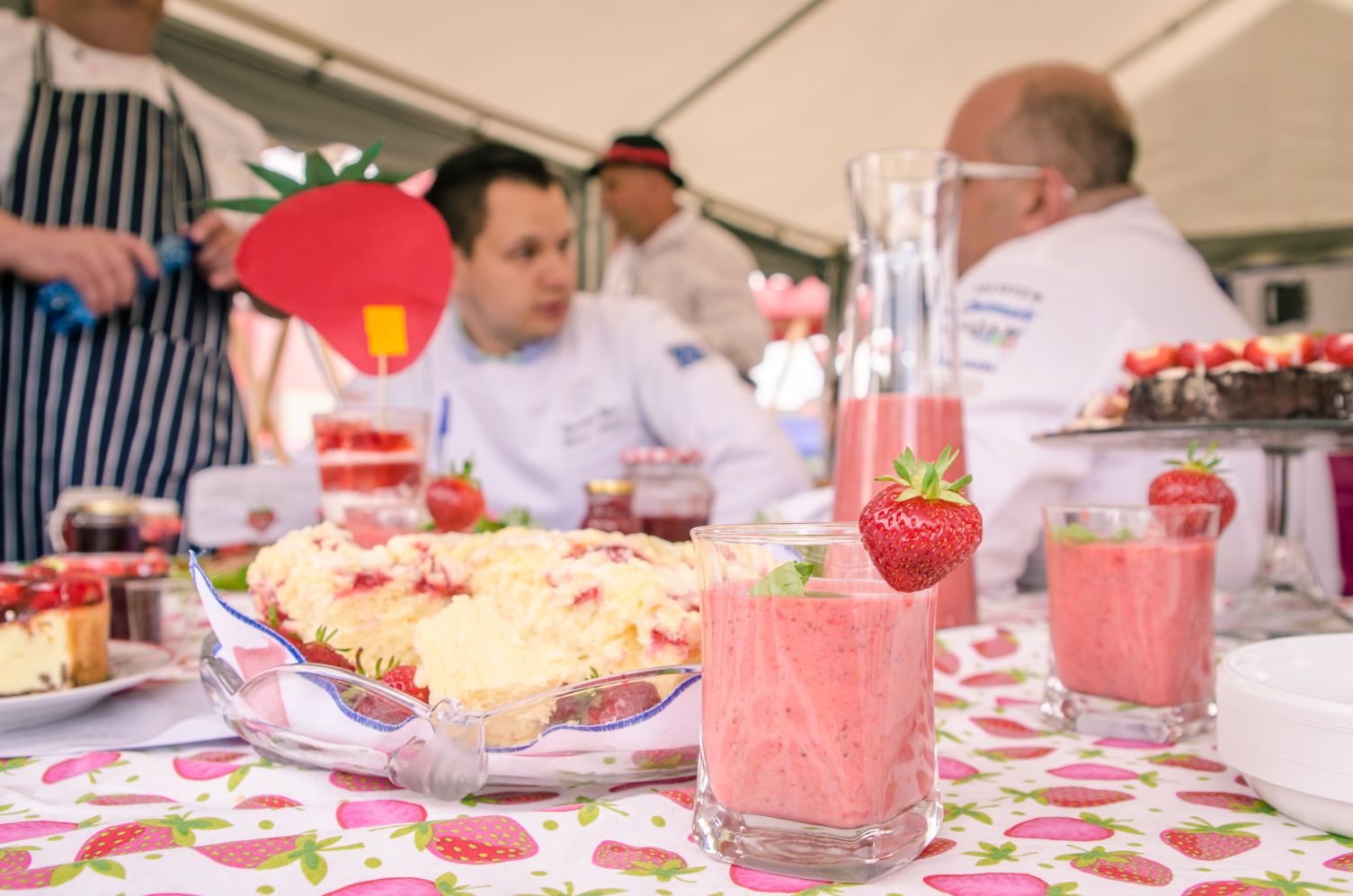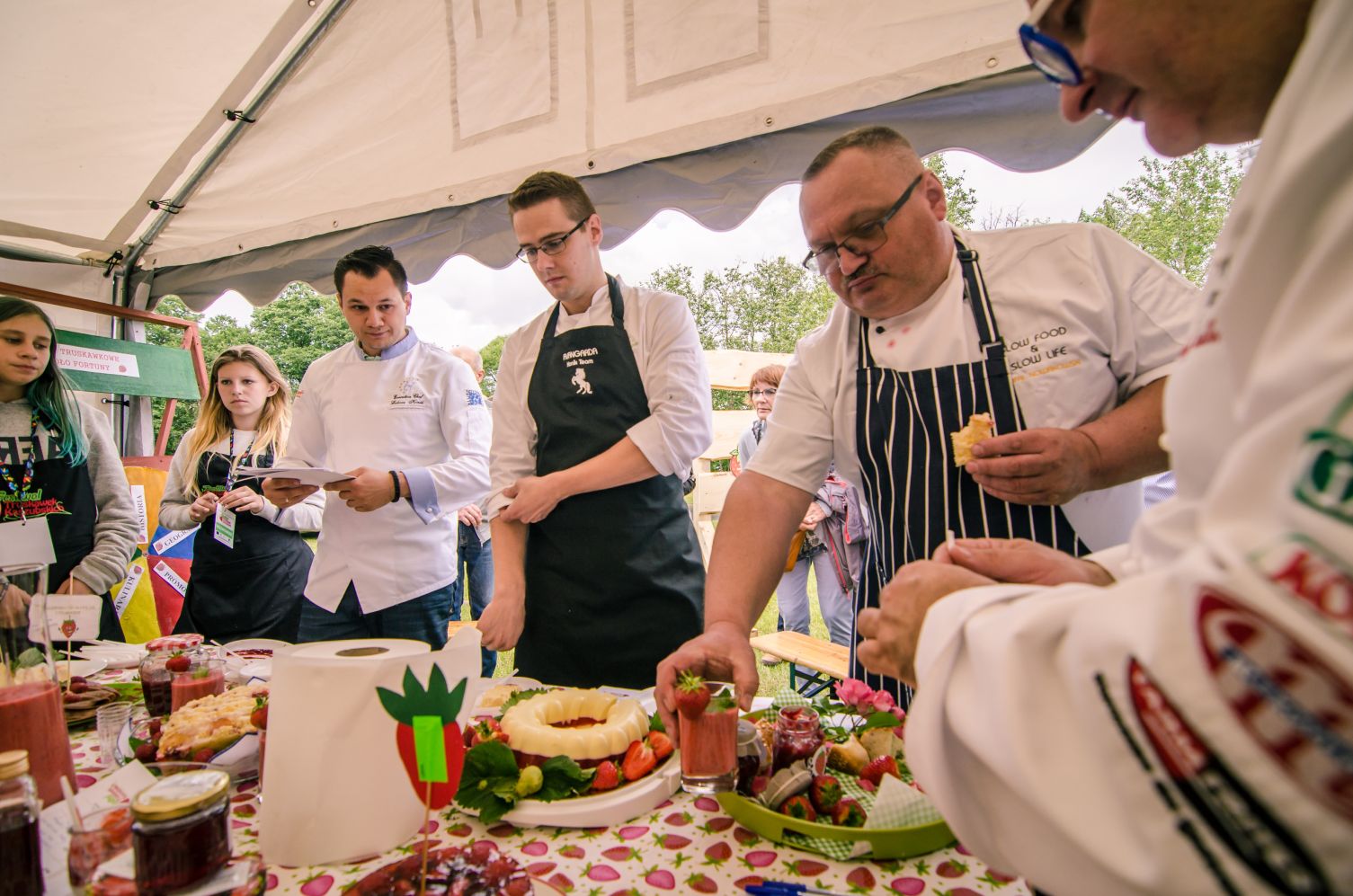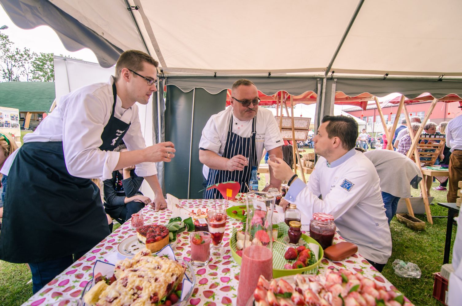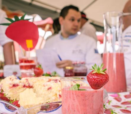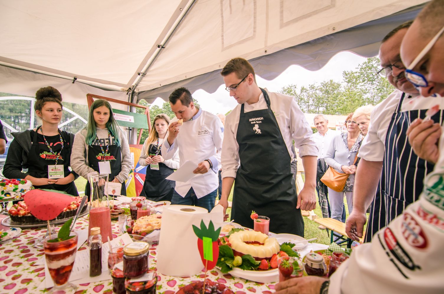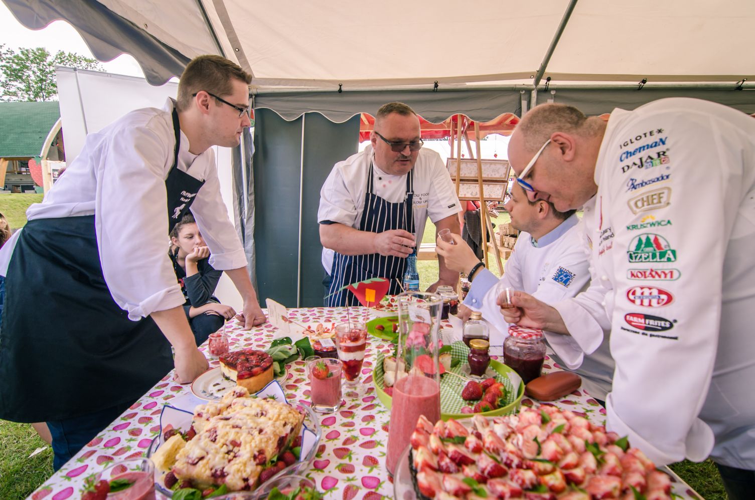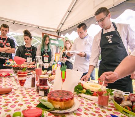 15.30 - Pokaz kulinarny w wykonaniu Stowarzyszenia Kucharzy Polskich - Krzysztof Szulborski i Andrzej Ławniczak ocena uczestników konkursu "Truskawka w roli głównej" - na najatrakcyjniejsze stoisko truskawkowe Festiwalu
