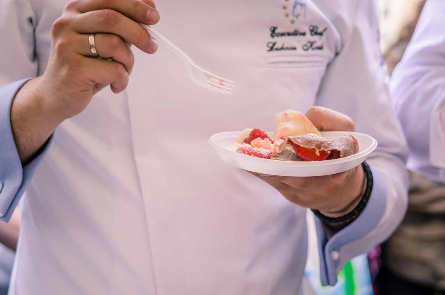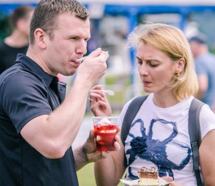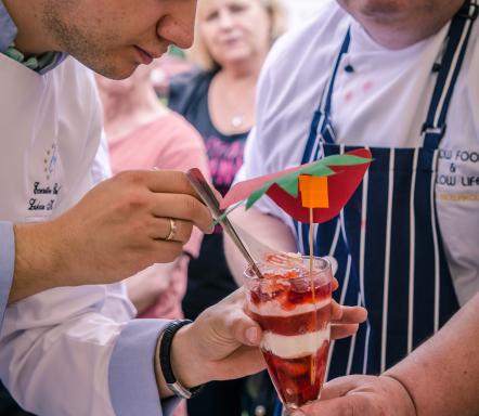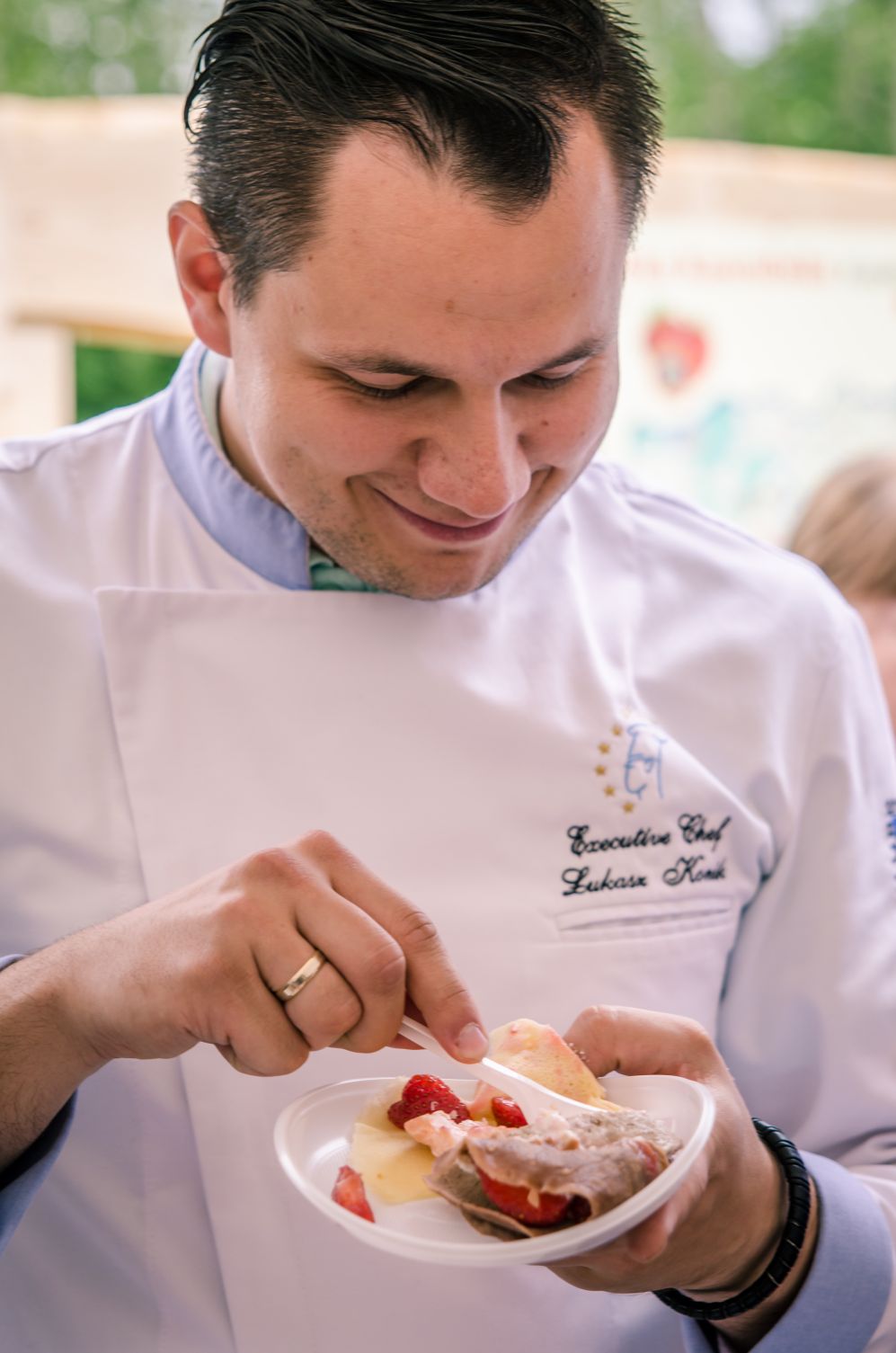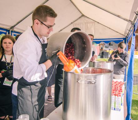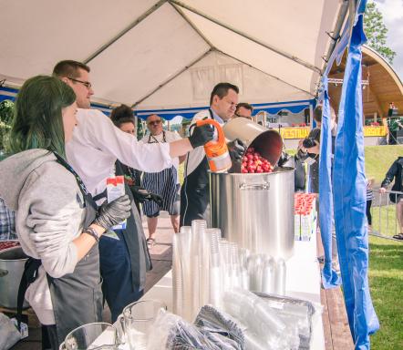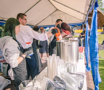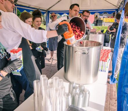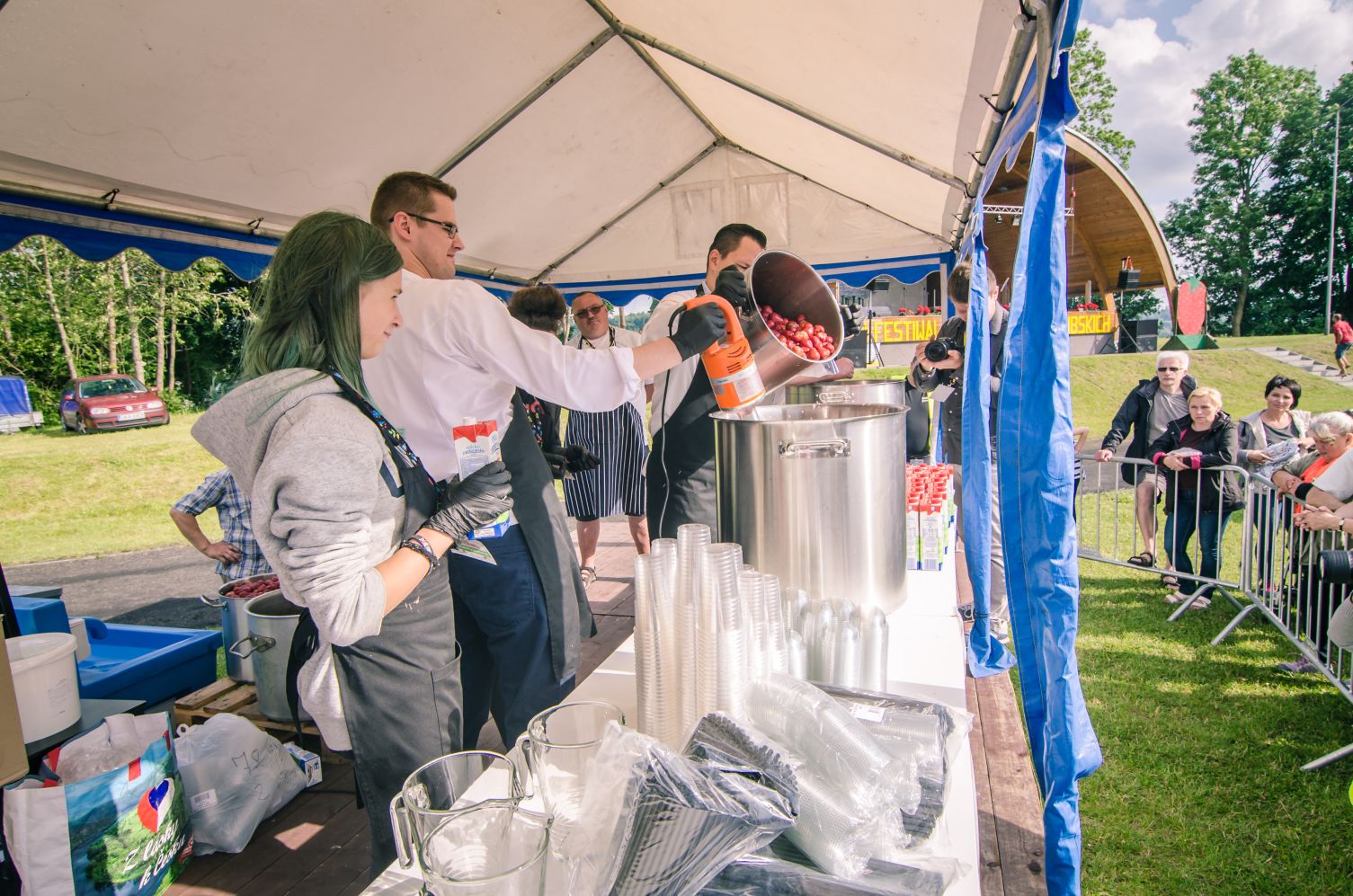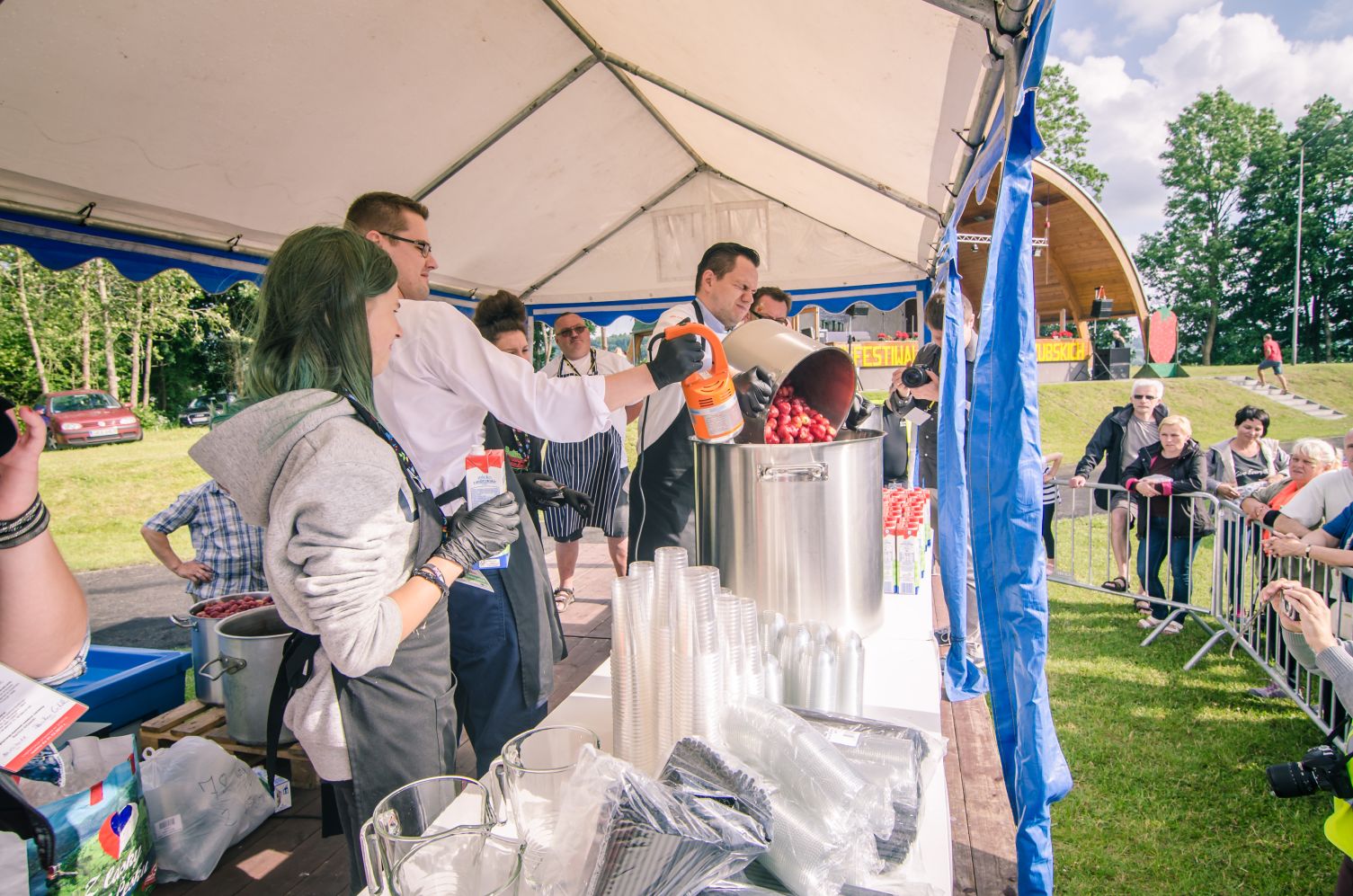15.30 - Pokaz kulinarny w wykonaniu Stowarzyszenia Kucharzy Polskich - Krzysztof Szulborski i Andrzej Ławniczak ocena uczestników konkursu "Truskawka w roli głównej" - na najatrakcyjniejsze stoisko truskawkowe Festiwalu
