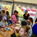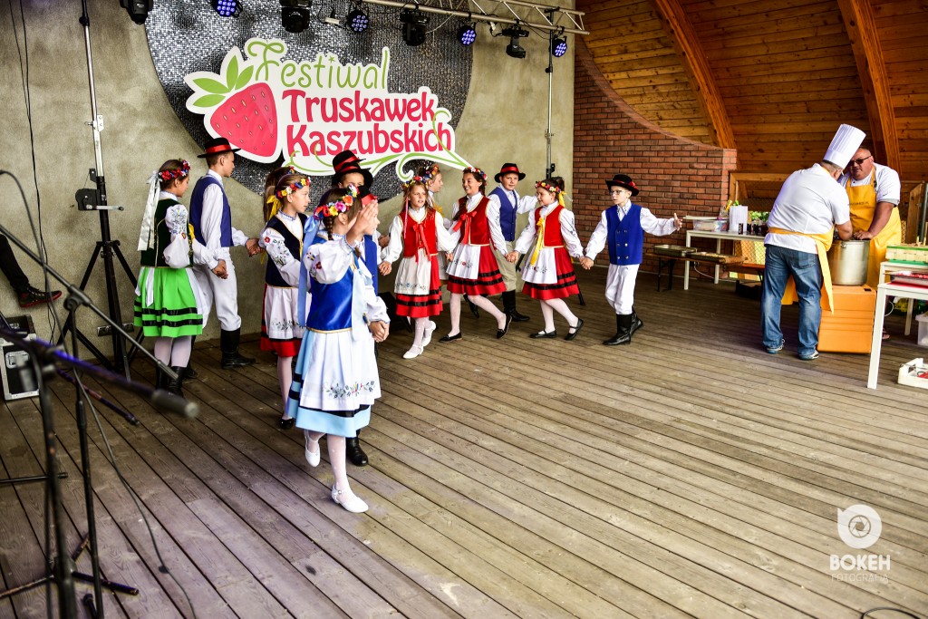 13.00 - Edukacyjne warsztaty kulinarne: „Truskawkowe pole - poznaj tajemnice kaszubskich truskawek”. Rozdanie nagród dla dzieci i pasowanie na „Truskawkowego Eksperta”